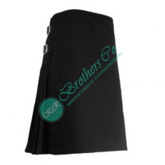 Men Traditional Scottish Tartan Modern Design Black Cotton Made Highland Dress Kilt with 3 Leather Straps
